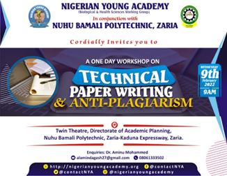 February 9, 2022: Nuhu Bamali Polytechnic, Zaria, focusing on technical paper writing and anti-plagiarism.
